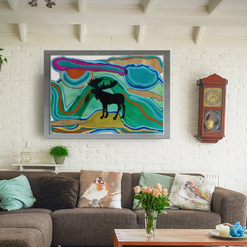 Subject: Wall Art, Modern, Abstract, Bright Colors, Office Wall Art, Contemporary Modern Painting, Loft Wall Art, Wall Art For Living Room, Bedroom Wall Art, Contemporary Living Room, Nordic Wall Art, Scandinavian Décor, Vibrant Interior Décor, north woods, wildlife, Lake Superior, moose, psychedelic, surreal, trippy